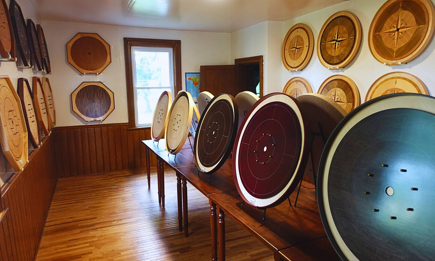 We do not make the crokinole boards. We design them and then have different highly skilled craftsmen here in Ontario, Canada make them for us. We buy in wholesale lots and sell them retail online and instore.